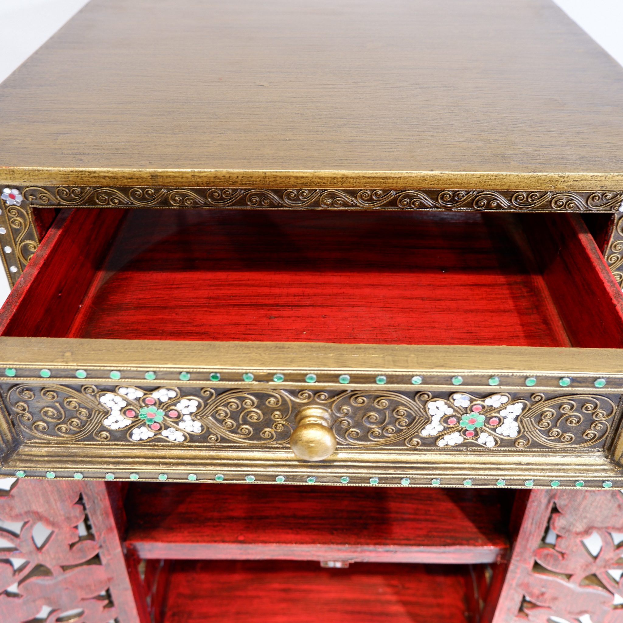ตู้แกะสลักฟักเงินฟักทองทรงเอ แบบ 2 บานประตู 1 ลิ้นชัก สีทองเก่า TBR-22 เป็นเฟอร์นิเจอร์ไม้แกะสลักไทยโบราณที่ผสมผสานความเป็นไทยได้อย่างลงตัว เหมาะสำหรับผู้ที่ชื่นชอบความคลาสสิกและความเป็นไทย เป็นตู้แกะสลักวินเทจ